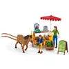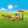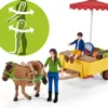 Pakuočių kiekis | 1x Farmer's wife, 1x Boy, 1x Dartmoor Pony mare, 1x Waist strap, 1x Rope, 1x Halter, 1x Drawbar, 1x Trailer, 2x Apple, 2x Bread, 2x Lettuce, 2x Potato, 1x Carrot, 1x Sandwich board, 1x Sunshade, 1x Scale, 1x Milk bottle, 1x Eggs, 3x Wooden box, 1x Cash register, 1x Bench |